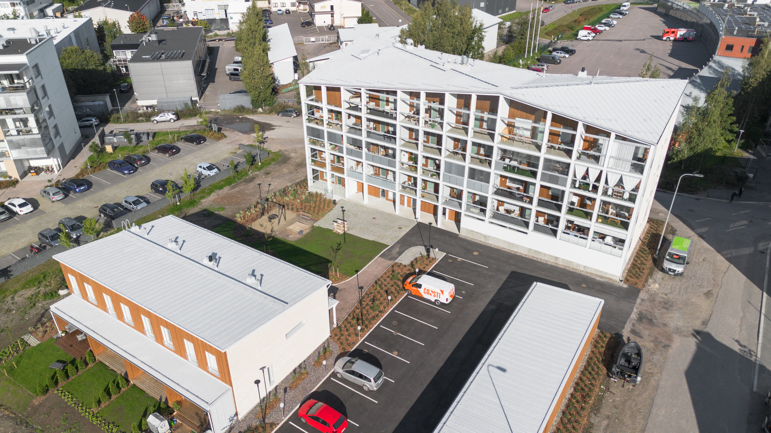 Tämä puolihitas-yhtiö koostuu yhdestä hissillisestä, 4–5 kerroksisesta kerrostalosta sekä kaksikerroksisesta rivitalosta. Yhtiössä on yhteensä 28 huoneistoa, aina tilavasta 37m² yksiöstä 96m² perheasuntoon. Yhtiössä edullinen kaukolämpö.